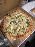 Tomato sauce, cheese, oregano. Classic cheese or create your own pizza.